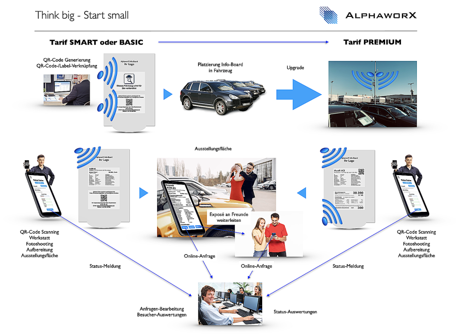 - Status-Tracking und einfache Rückmeldung aktueller Status/Standort des Fahrzeugs von Anlieferung bis Verkauf an Web-Applikation